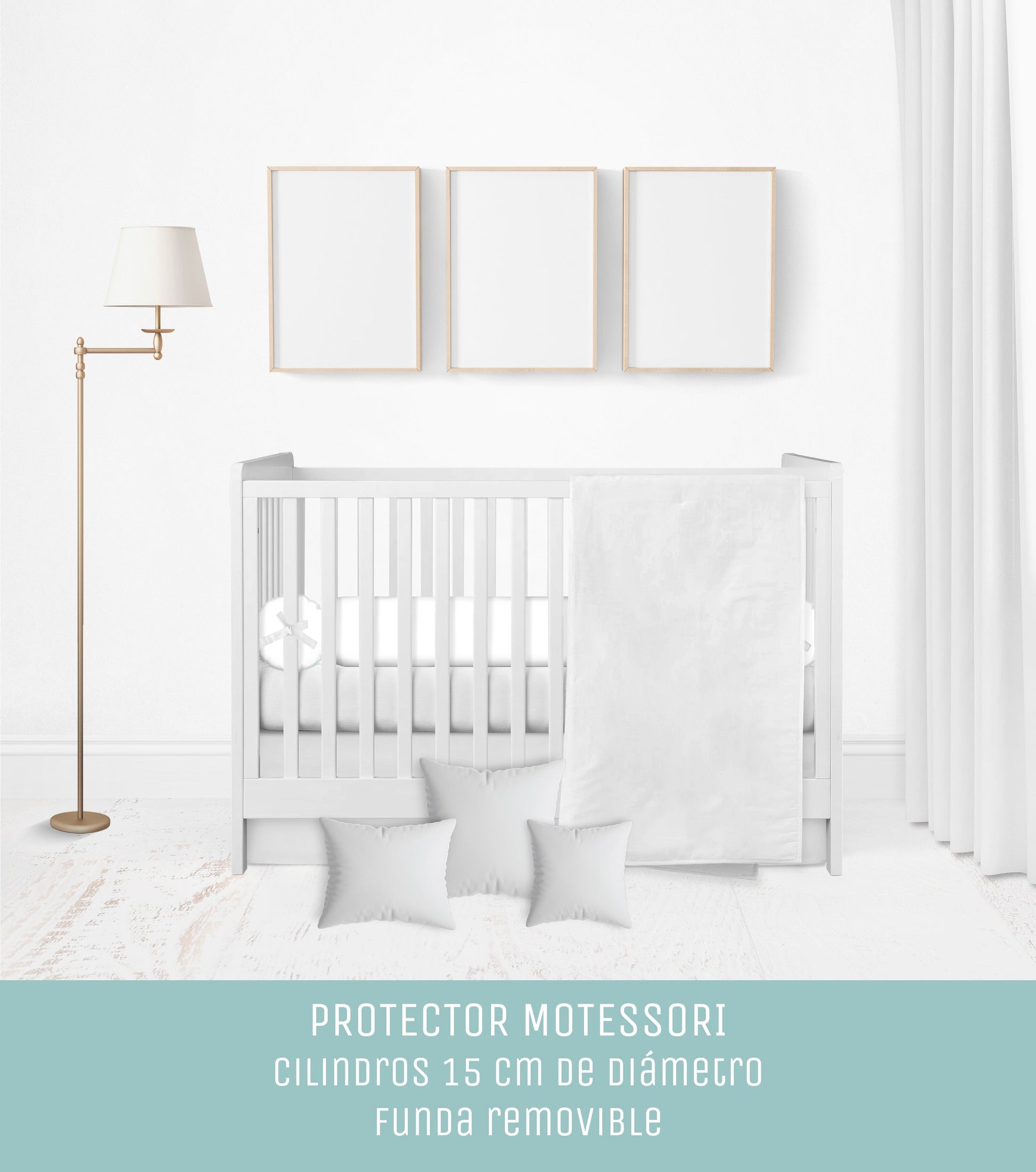 Protector Montessori: Relleno de guata, 13-15 cm approx, cubre los 4 lados, los 4 cilindros vienen separados